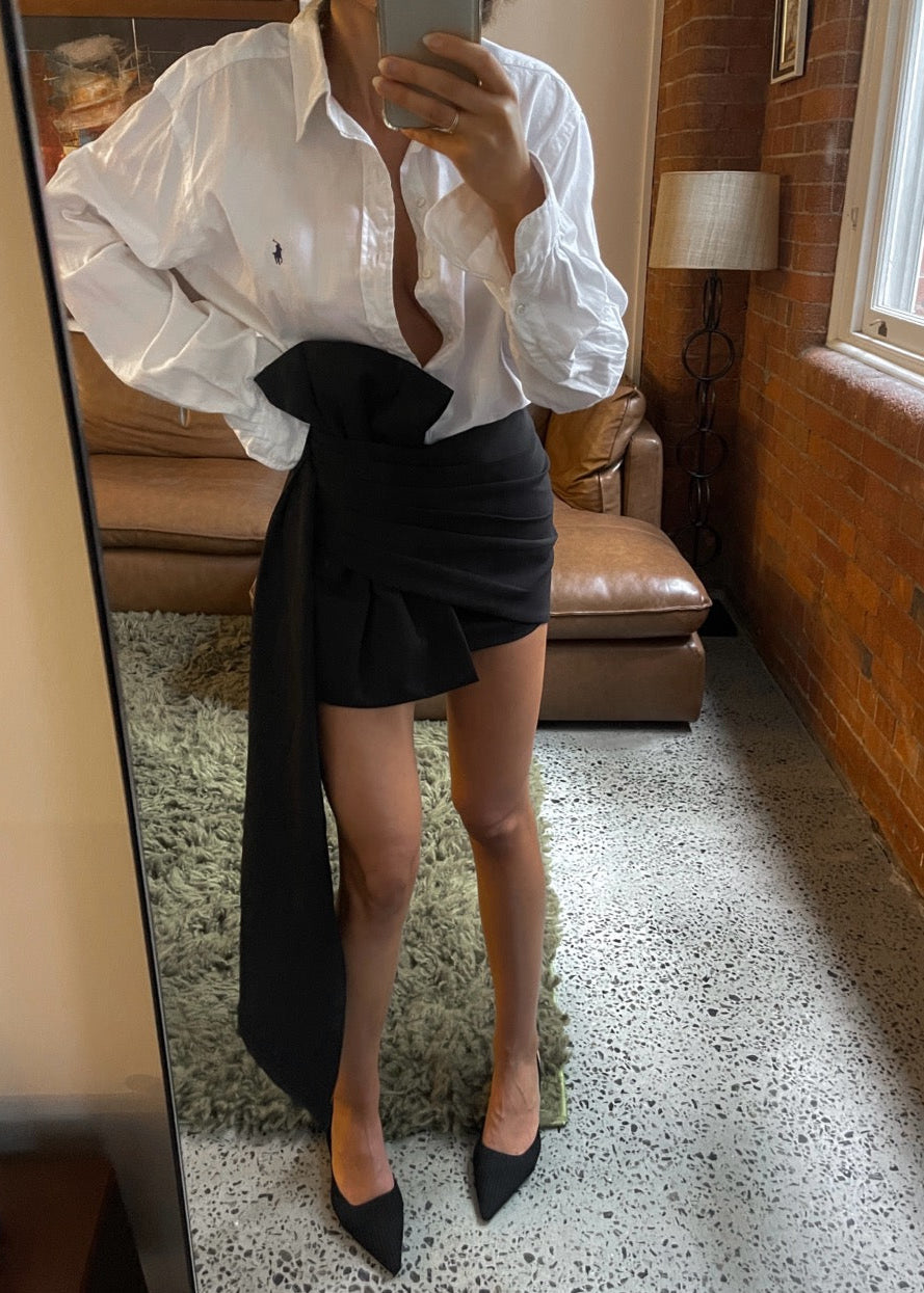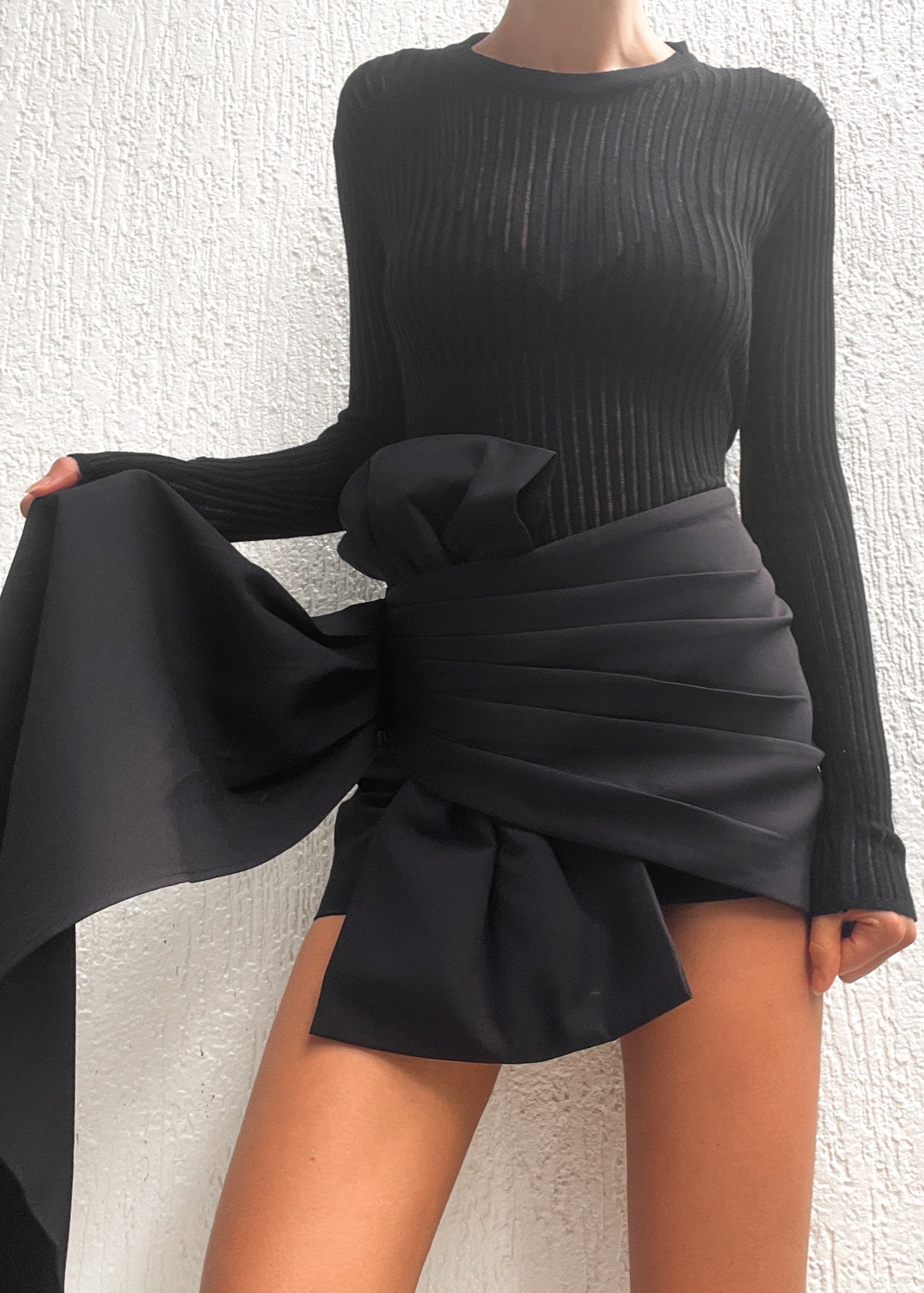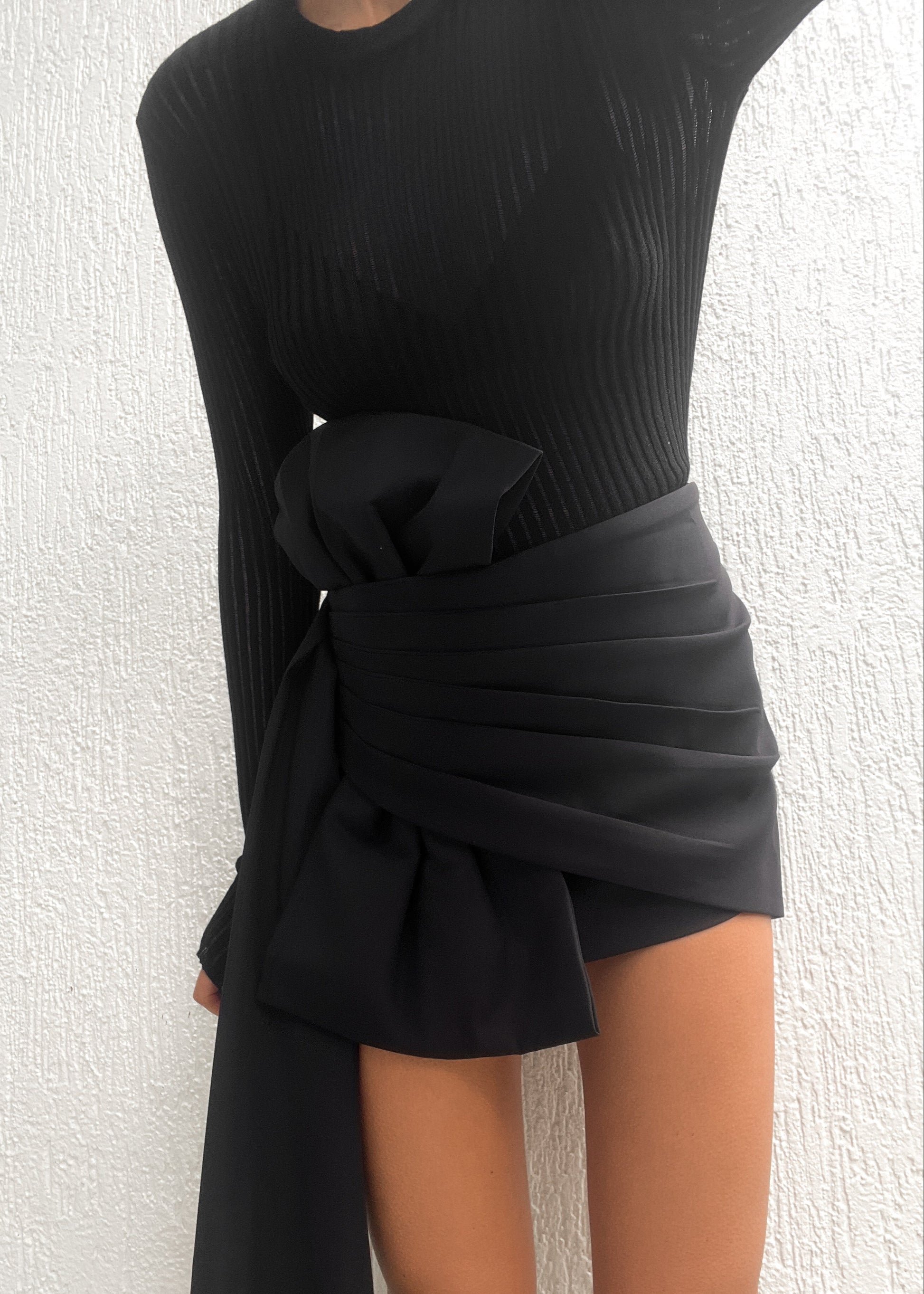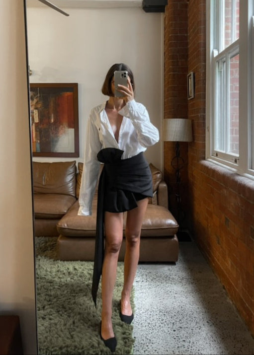 Wear Cora with comfort and ease knowing there are built in shorts. That's right! She's a skort! Crafted from a premium and thick suiting fabrication, Cora sits just above the hip and features an exaggerated statement bow with an invisible side zip to close. The perfect elevation to add to any outfit.