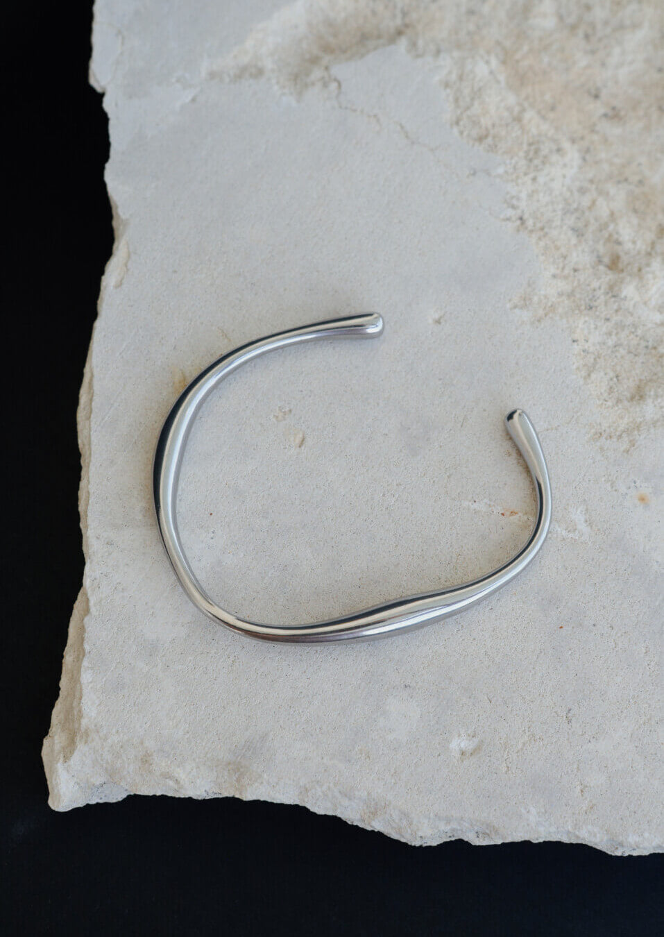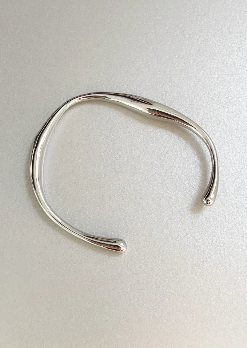 The minimalist bracelet cuff you've been searching for. Elise is unique and distorted in shape however moulded to sit perfectly on the wrist. Crafted from stainless steel and is coated in durable titanium silver platings with physical vapor deposition (PVD). This vacuum coating process produces a brilliant finish to the base metal to provide an extremely durable coating. They are waterproof, nikel-free and hypoallergenic and will be sure to last. Wear on skin or feature over sleeves.