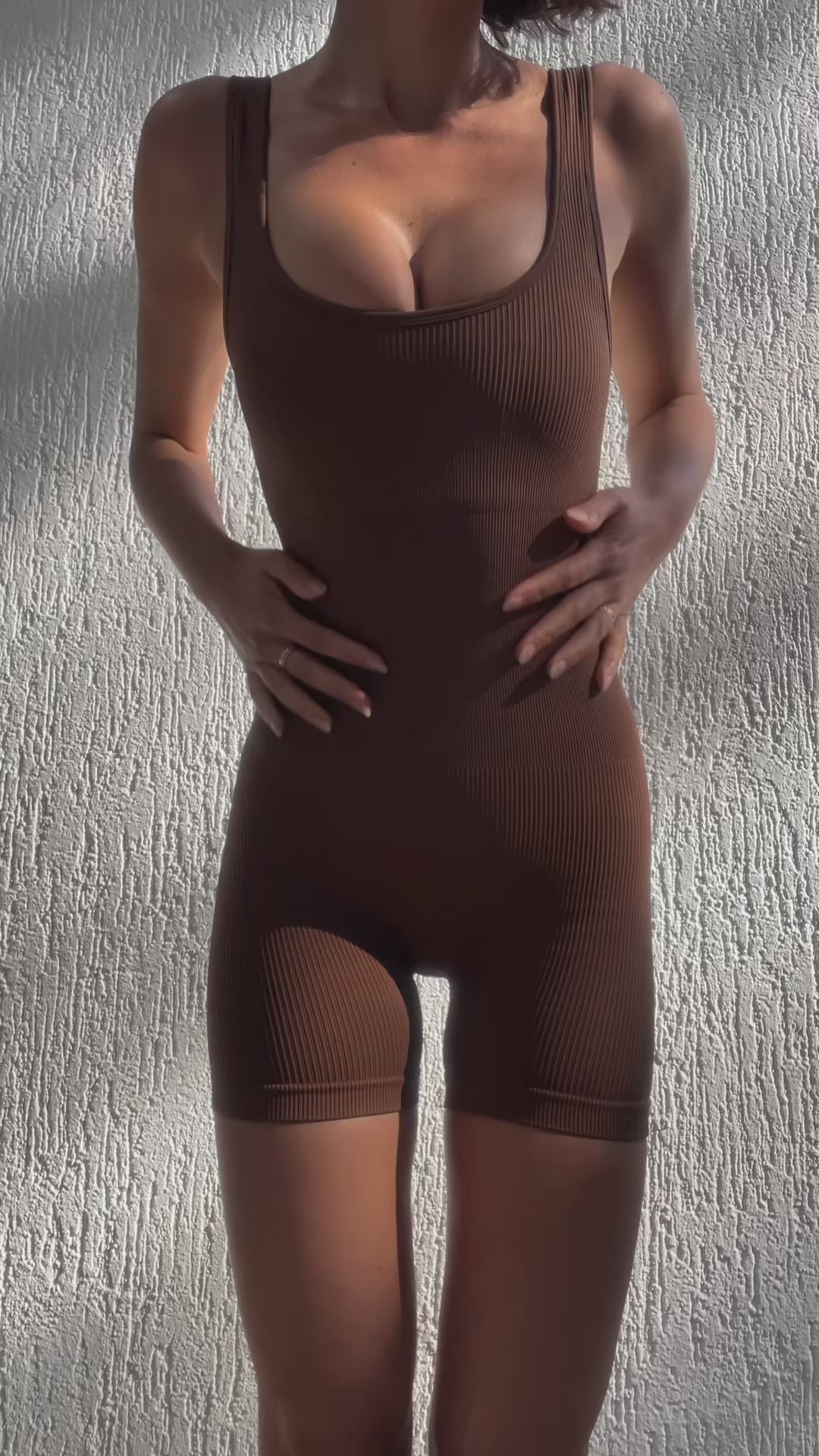 The Katia features a flattering square neckline with widened shoulder straps, a U-shaped backline and removable breast pads to lift the chest whilst not strangling the shoulders. She follows down into a slinky design to a threaded waist with four-way stretch to form a supportive micro-rib waistband. The Katia is cut mid thigh and is designed to accentuate your glutes and lift and sculpt your booty.