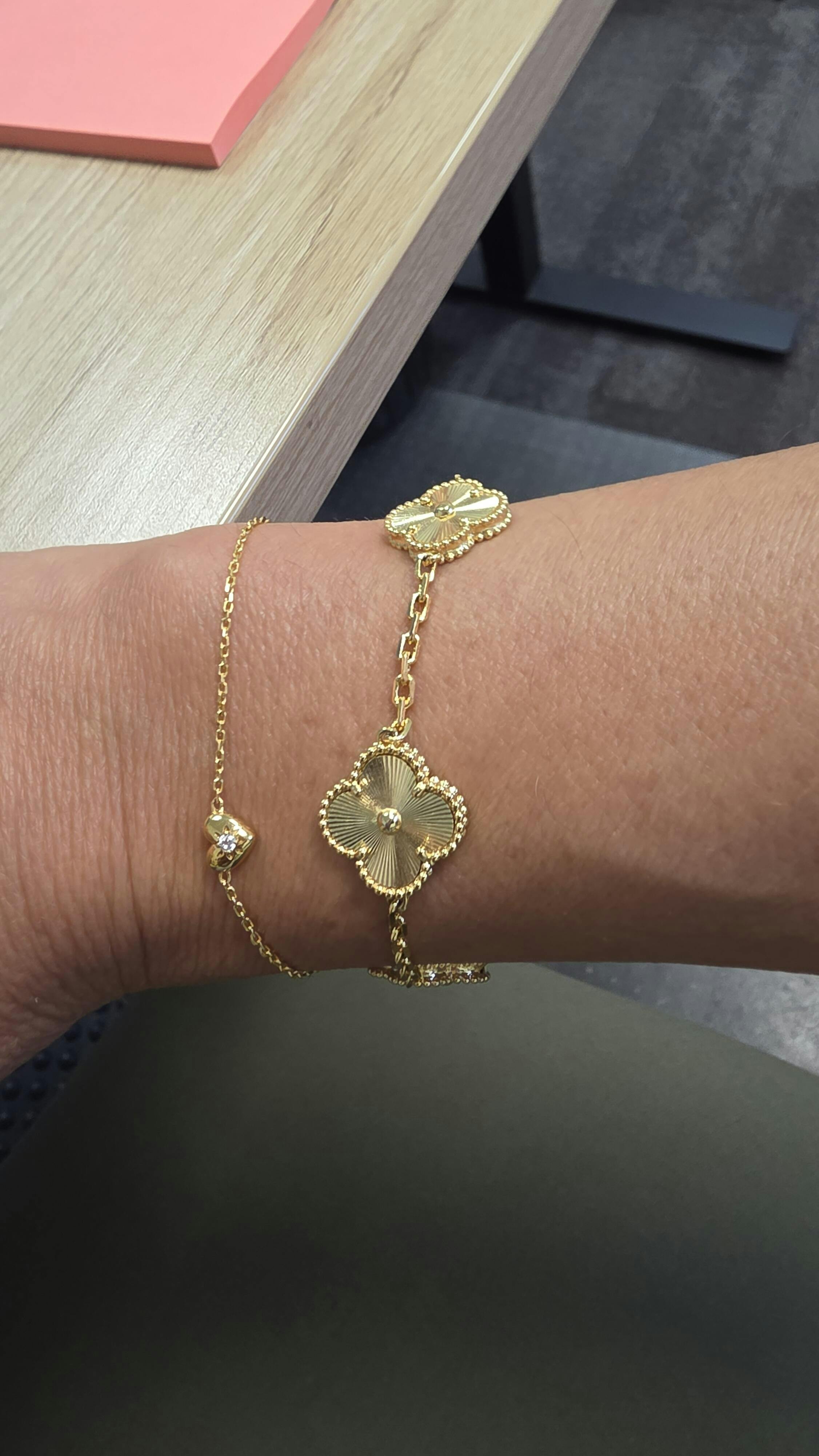 This piece was way better than expected. The gold is shiny and lux the design is very on point looks beautful and it has some weight which is good as it makes the piece feel more lux and solid. I was hoping it wasnt light weight flimsy and it did not disappoint. I highly recommend. It looks exaxtly like the van cleef but so much more affordable 😉