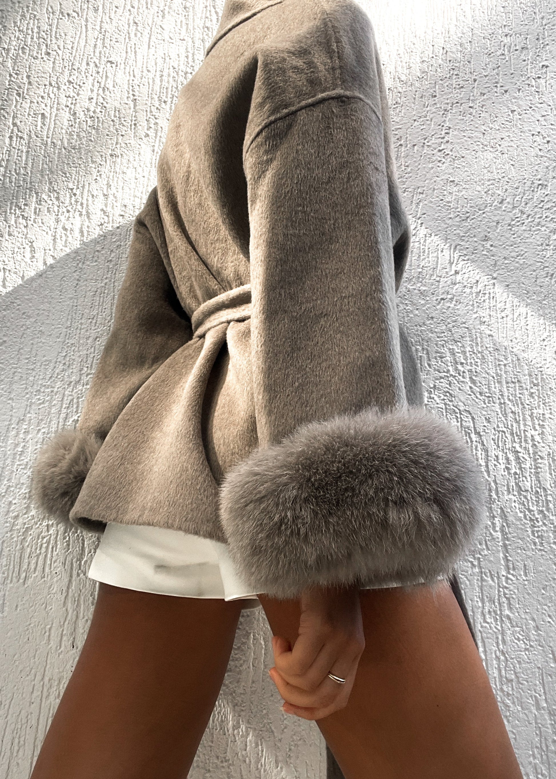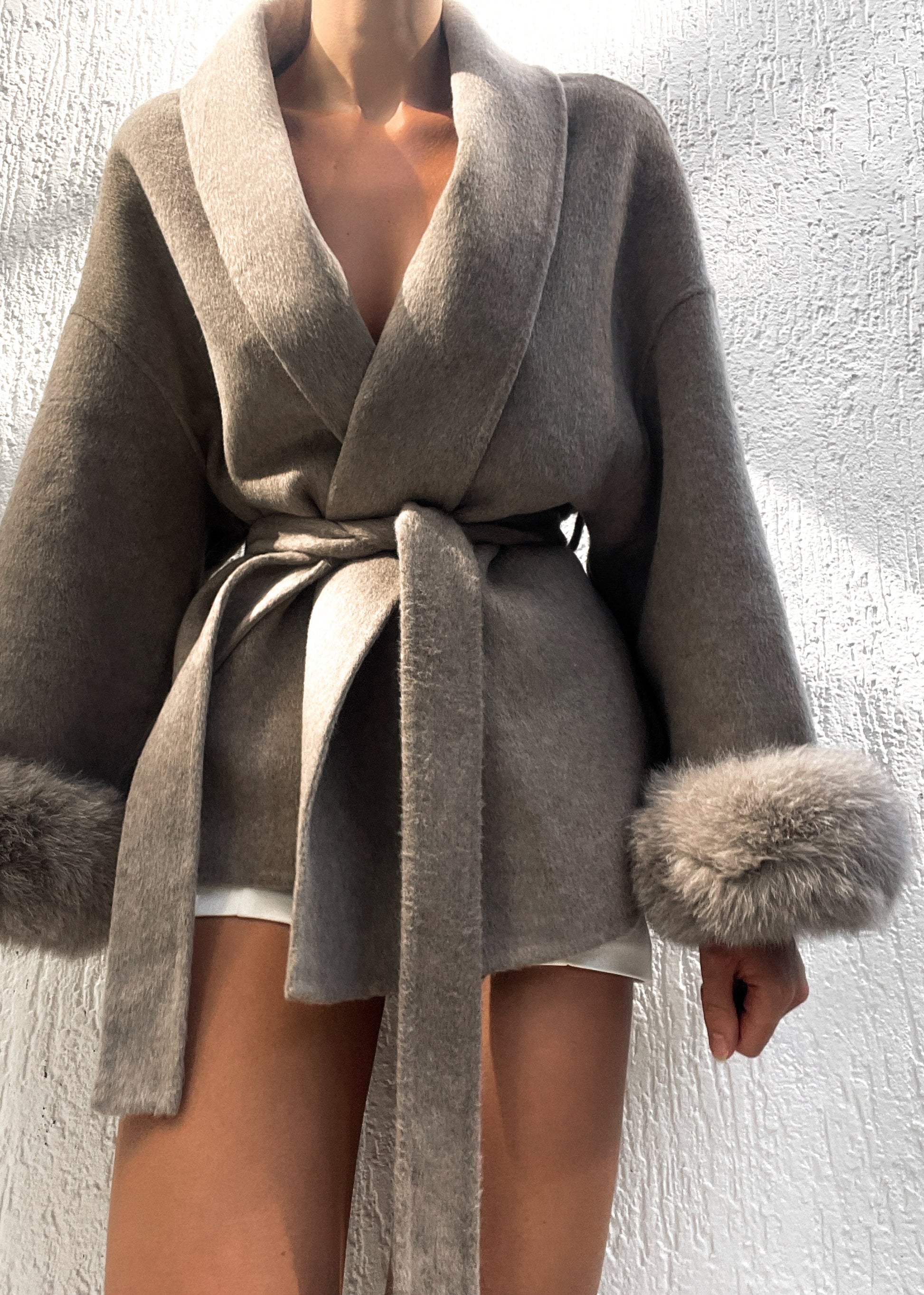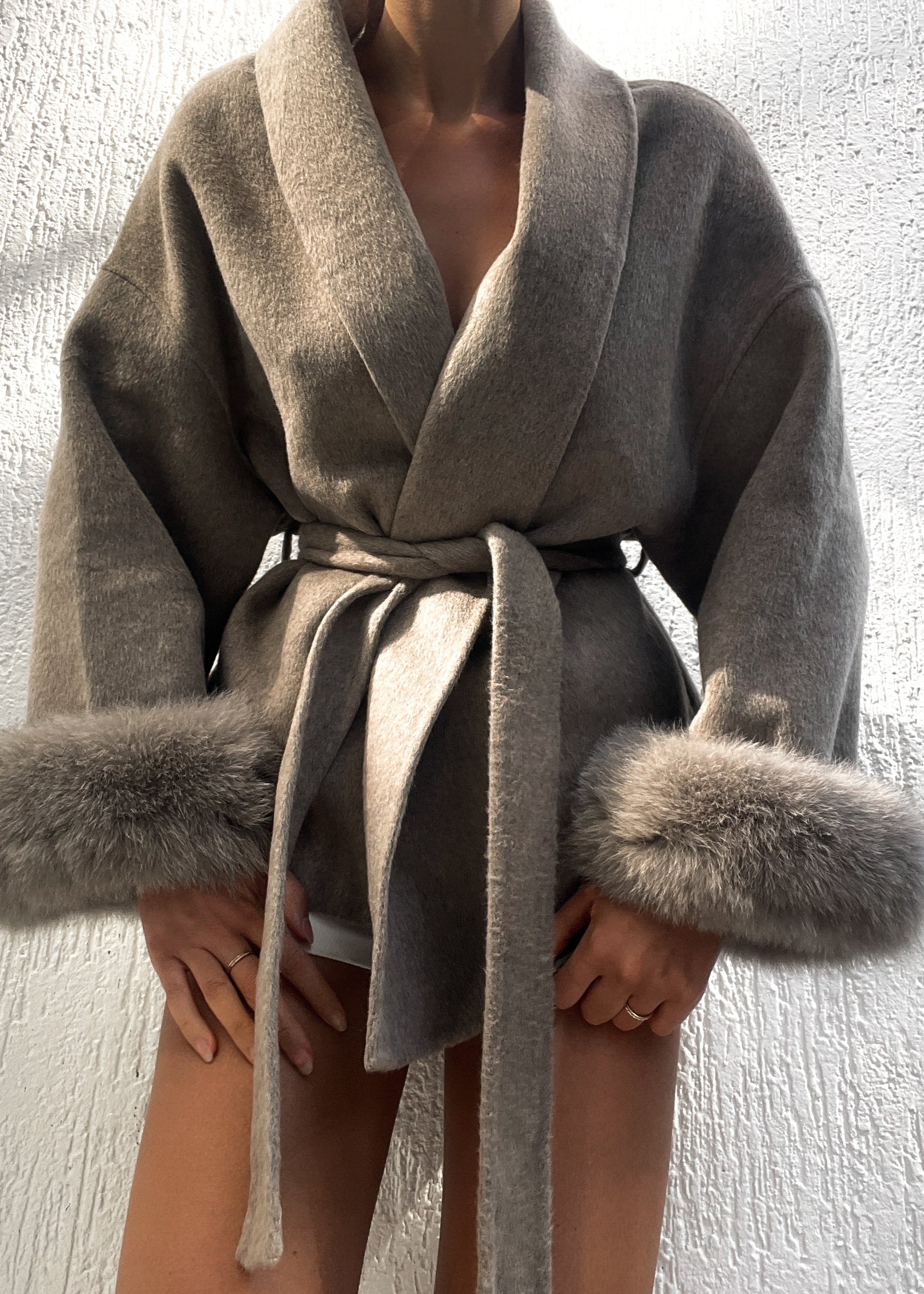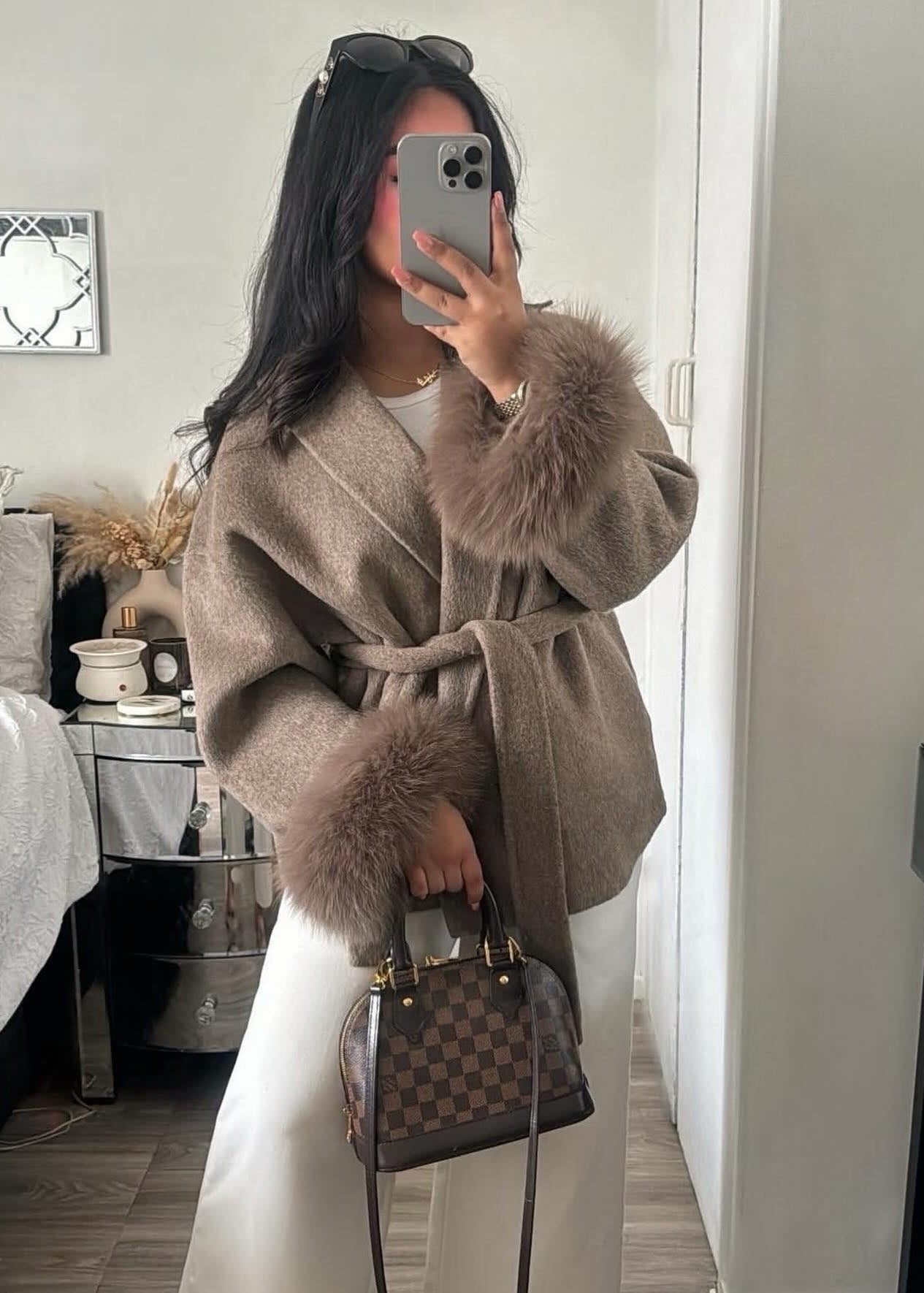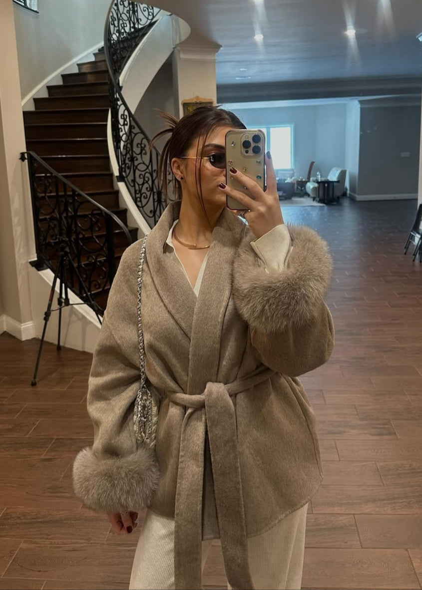Snuggle up in Natasha. This beautifully soft wool blended coat features a luxuriously soft vegan fur trim at the wrists. Wear with or without, as this feature is also removable. She features a broad lapel collar and a detachable waist tie so you can wear open or closed. Create numerous looks with this outerwear staple designed to add instant elevation to any ensemble.