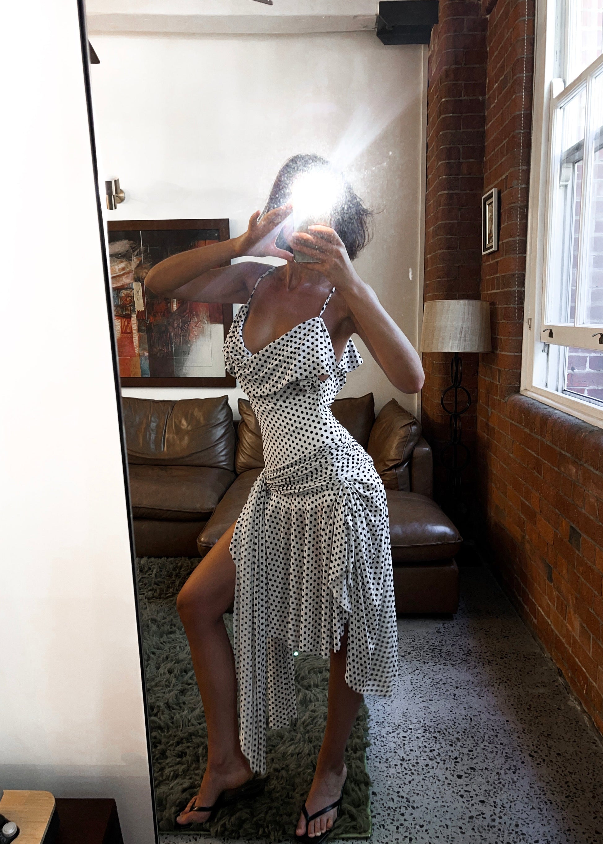 Our model is an AU/UK 6 or US 2 and is wearing the size S but please refer to our size guide for your ideal fit.