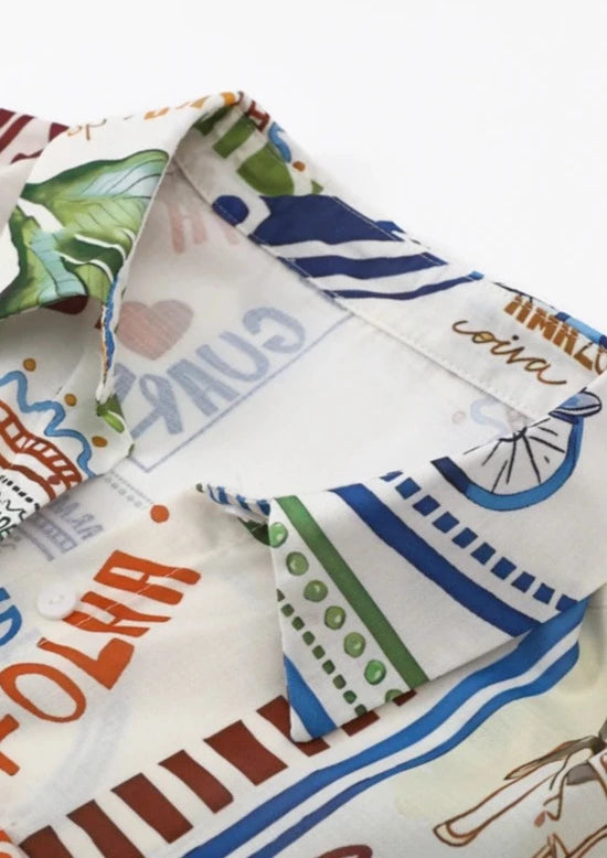 Beautifully crafted from a textured blended linen fabrication, the Rio Set features an array of vibrant artwork. The shirt is a more oversized style featuring front buttons and front side pocket. Take comfort in the shorts with the double elastic waistband and side pockets.