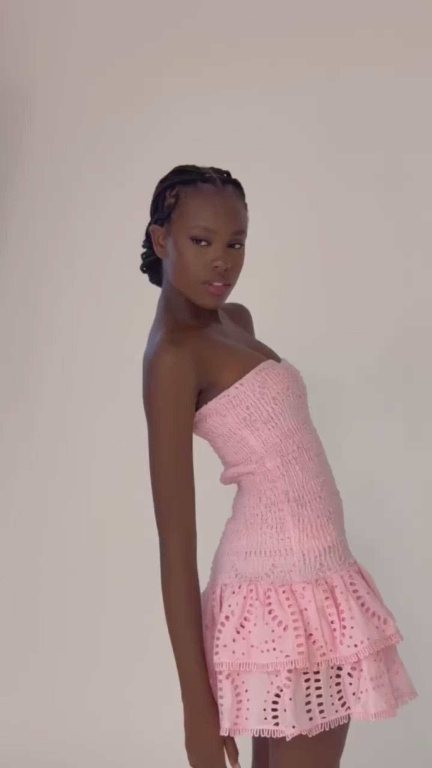 Crafted from a beautiful cotton blended embroidered broderie anglaise, the Rosé is an effortless piece to throw on for day to night wearing. She is a strapless design with optimal stretch featuring a shaped busted front, designed to hug and cater for all curves of the body. The shirred bodice enhances the figure and falls down to a pretty and romantic flare.