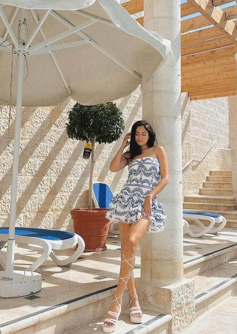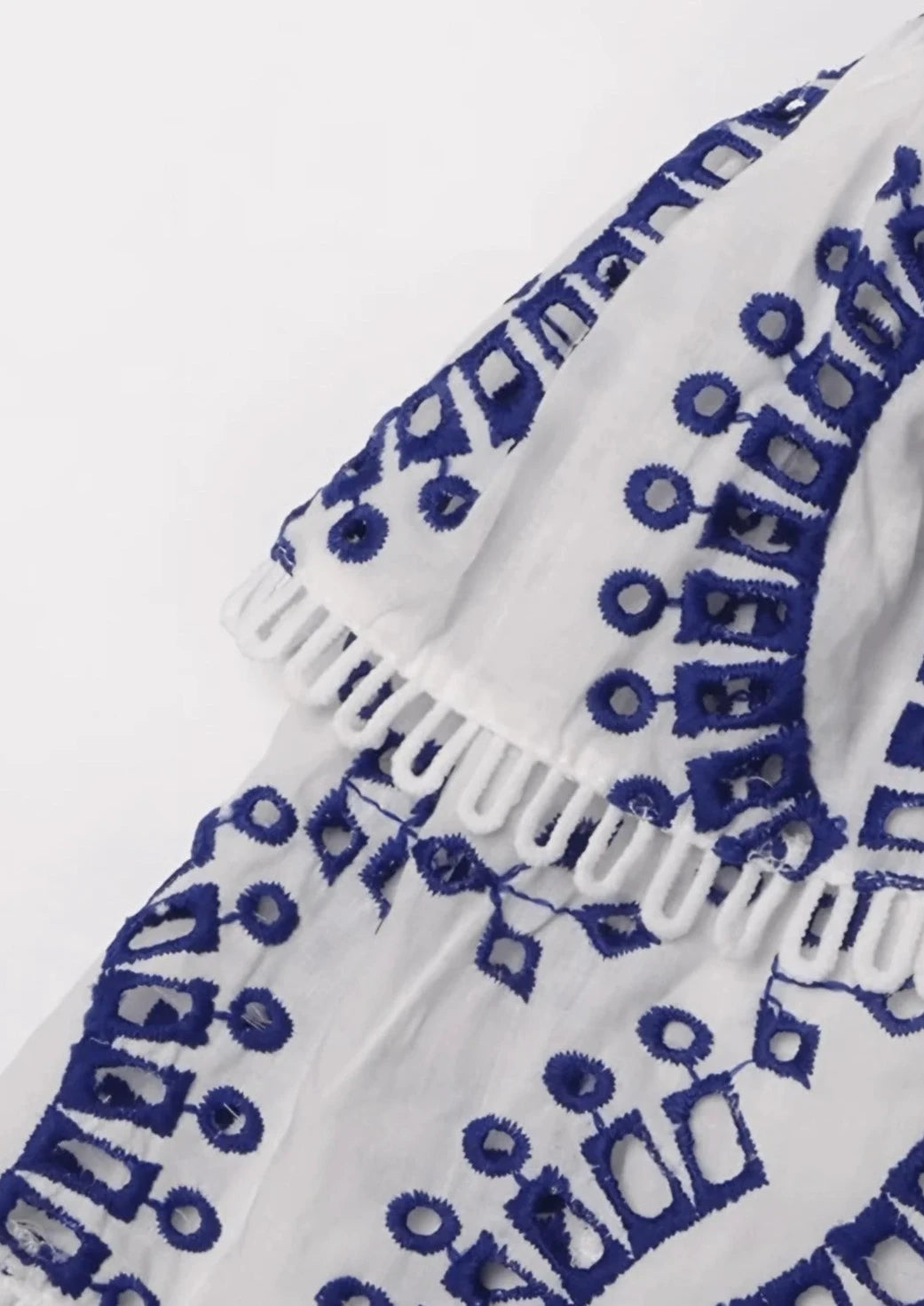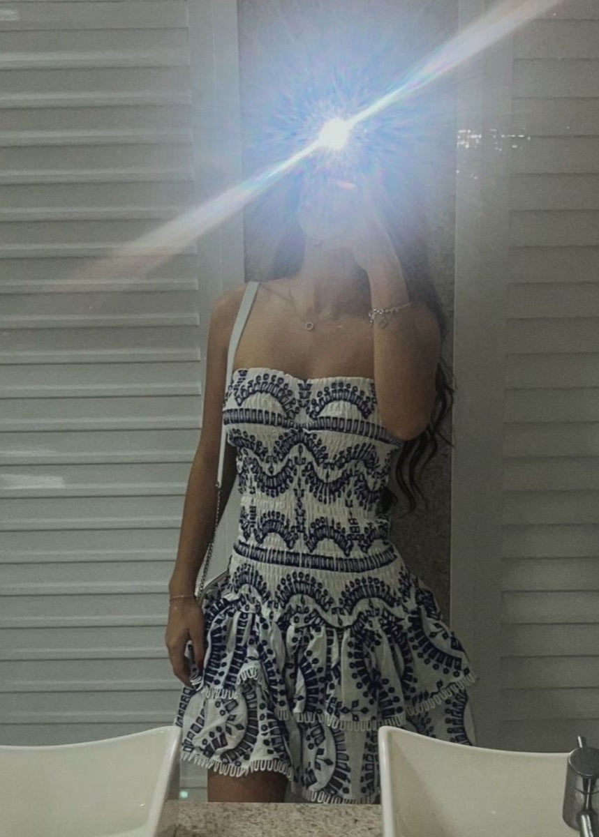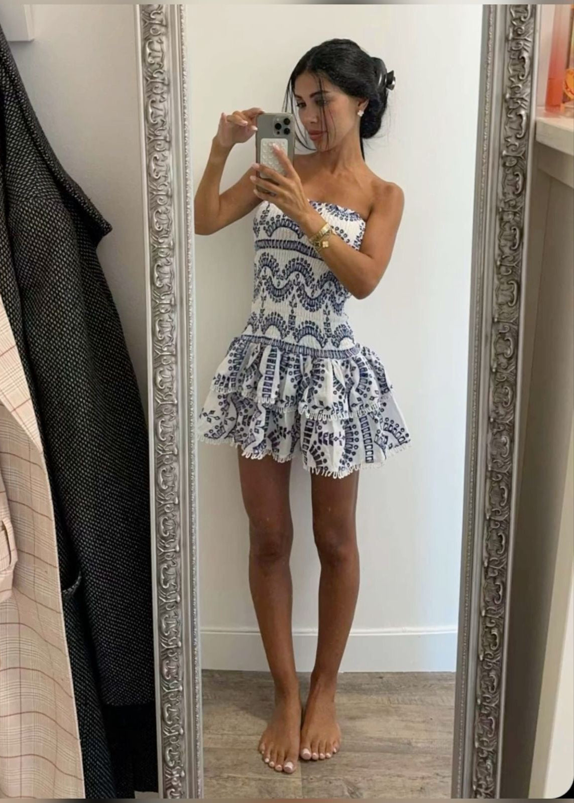 Crafted from a beautiful cotton blended embroidered anglaise, the Santorini is an effortless piece to throw on for day to night wearing. She is a strapless design with optimal stretch featuring a shaped busted front, designed to hug and cater for all curves of the body. The shirred bodice enhances the figure and falls down to a pretty and romantic flare.